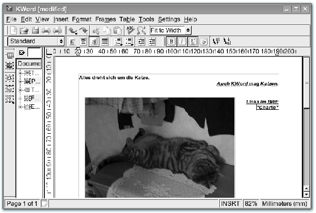 KWord ist ein typisches Textverarbeitungsprogramm, das sich in etwa mit Abiword von GNOME oder dem alten Works für Windows vergleichen lässt (siehe Abbildung 4.11). - KSpread