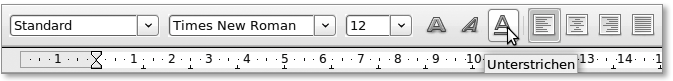 Für die Formatierung von Text stehen Ihnen selbstverständlich diverse Möglichkeiten zur Verfügung (Kursivschrift, Fettschrift, Unterstreichen von Text, verschiedenste Schriften und Schriftgrößen usw.). Die entsprechenden Symbole zur Veränderung von Text finden Sie in der Symbolleiste. Bewegen Sie den Mauszeiger über eines der Symbole, um zu erfahren, was es bewirkt. Die folgende Abbildung zeigt die typischen Schaltflächen zur Formatierung von Text.