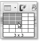 Häufig werden Tabellen in Textdokumenten benötigt. Mit Writer können Sie mit zwei Klicks eine Tabelle in Ihr Dokument einbauen. Klicken Sie dazu, wie in Abbildung dargestellt, auf das Tabellensymbol. Daraufhin erscheint eine Mini-Tabelle, in der Sie auswählen können, wie viele Spalten und Zeilen Ihre Tabelle haben soll (Zeilen werden später automatisch erweitert, wenn Sie in der letzten Spalte der letzten Zeile die Tabulator-Taste drücken).