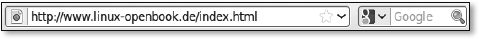 In der linken Zeile können Sie die Adresse einer Webseite, z. B. http://www.google.de eingeben, wobei Sie http:// (das ist die Angabe des Übertragungsprotokolls) auch weglassen können, da der Browser standardmäßig von diesem Protokoll ausgeht. Es genügt also, www.google.de zu schreiben. Bei den meisten Webseiten können Sie auch www. (das ist ein so genannter Hostname) weglassen, doch das hat letztlich nichts mit dem Browser zu tun, wie Sie noch in Kapitel lernen werden.