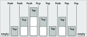 Mit dieser Operation kann man schließlich das oberste Element vom Stack löschen. Beim nächsten Aufruf von top würde man also das Element unter dem von pop gelöschten Element geliefert bekommen.