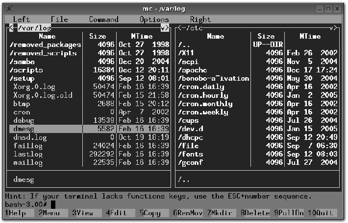 Vielleicht gehören Sie wie wir zu einer Generation von Computernutzern, die vor vielen, vielen Jahren mit dem »Norton Commander« unter MS-DOS gearbeitet haben. Für Linux gibt es seit vielen Jahren einen freien Klon dieses Programms. Dieser Klon trägt den Namen »Midnight Commander« und sieht nicht nur wie der Norton Commander aus, sondern er funktioniert auch wie dieser.