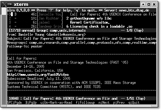 Abbildung 16.3 Der Konsolen-NNTP-Client slrn