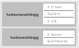 Der X-Server läuft also auf der lokalen Workstation des Anwenders, und ein X-Client kann sowohl auf dem lokalen als auch auf einem beliebigen anderen System laufen.