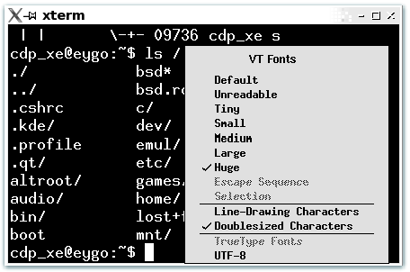 Die Konfiguration von Xterm kann aber auch ganz einfach via Mausklick erfolgen. Dazu drückt man die Taste Strg und dazu entweder