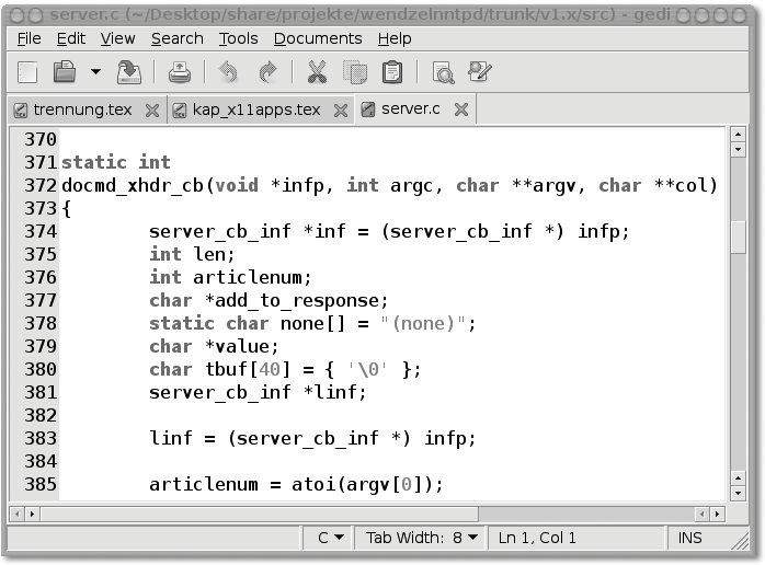 Abbildung 24.5 Gedit, ebenfalls mit Highlighting für C-Syntax