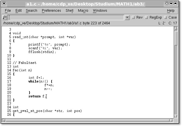 Abbildung 24.4 NEdit mit Highlighting für C-Syntax