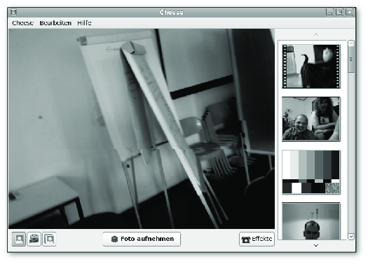 Cheese ist eine Software des GNOME-Projekts, mit der über eine Webcam Bilder und Videos aufgenommen werden können. Die Bedienung von Cheese ist sehr einfach, der Funktionsumfang auf das Wichtigste beschränkt. Einfache grafische Effekte können ebenfalls hinzugefügt werden.