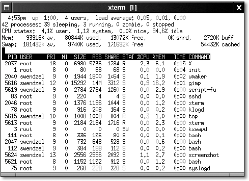 Die Prozesstabelle ist ähnlich wie bei ps aufgebaut und besteht im Wesentlichen aus den gleichen Spalten (siehe Abbildung 26.1).