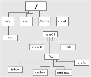Wie Sie wissen, ist die Verzeichnisstruktur in Unix hierarchisch aufgebaut. Ein Verzeichnis kann Dateien jeglichen Typs und somit natürlich auch Unterverzeichnisse enthalten. In diesen können wiederum viele weitere Verzeichnisse, Unterverzeichnisse sowie reguläre Dateien liegen.