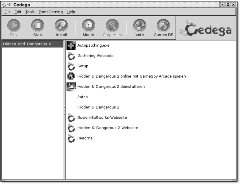 Abbildung 29.1 Cedega mit installiertem Hidden and Dangerous 2