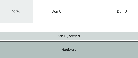 Virtuelle Maschinen werden unter Xen als Gäste beziehungsweise Domänen bezeichnet. Die erste, unter dem Xen-Hypervisor gestartete Domain ist eine privilegierte Domain und wird als Domain 0 beziehungsweise Dom0 bezeichnet. - Weitere Unprivilegierte Domains (DomU)