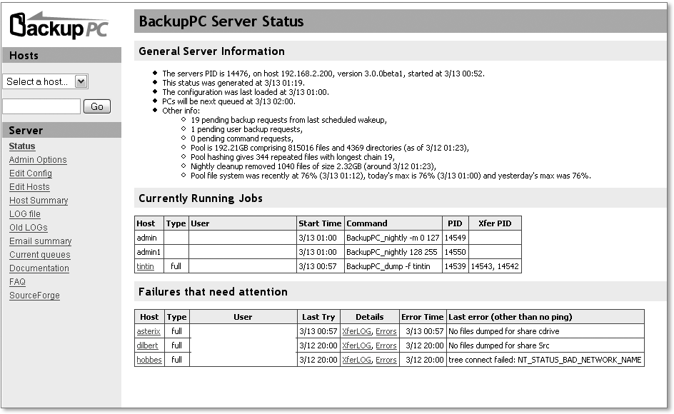 Die Daten werden je nach Konfiguration in regelmäßigen Abständen auf den BackupPC-Rechner kopiert und dort gespeichert. Über das Webinterface kann man schließlich einen Restore über das Netzwerk ausführen, also die Dateien einzeln oder auch insgesamt zurücksichern.