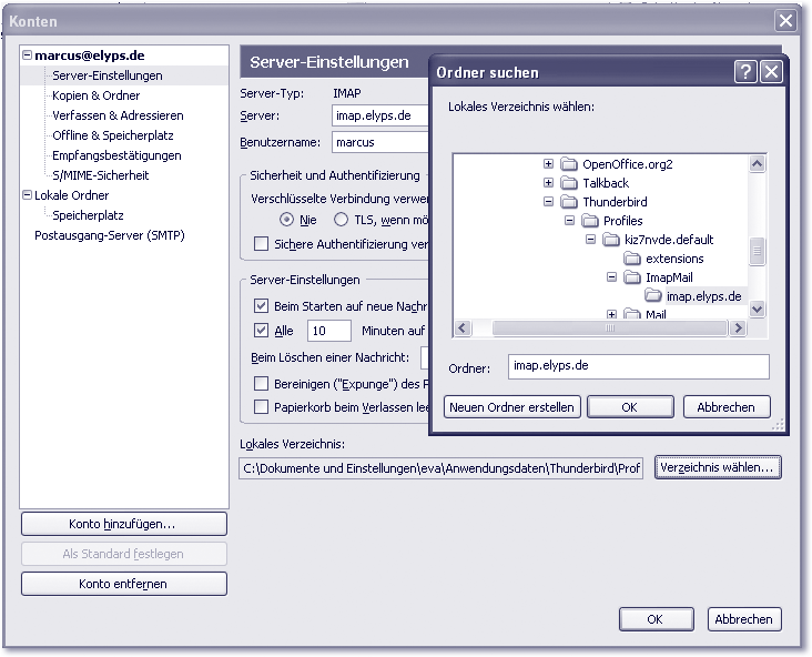 IMAP mit Thunderbird