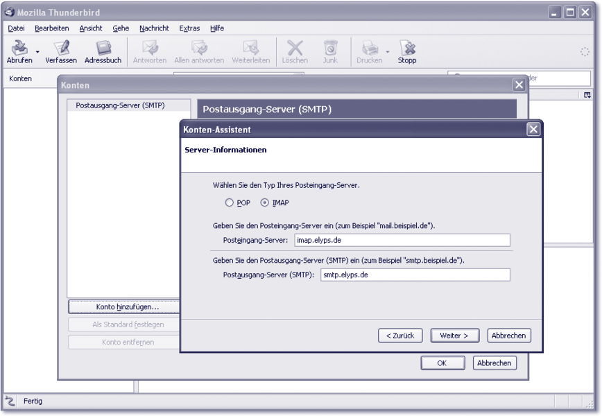 Abbildung 4.3 »Thunderbird« unter Windows beim Einrichten eines IMAP-Kontos