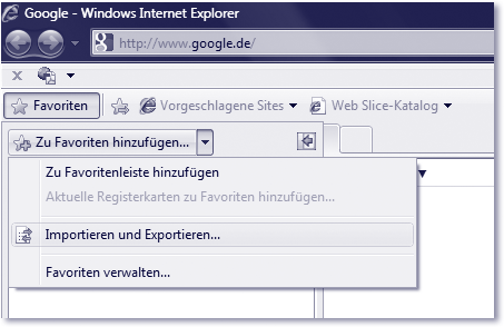 Abbildung 4.15 Der »Internet Explorer« unterstützt sowohl den Export Ihrer Favoriten als auch den Import fremder Lesezeichen.
