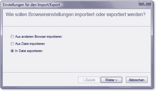 Das Austauschformat der im ersten Schritt genannten Datei ist eine HTML-Datei. Diese Datei lässt sich dann in einen anderen Browser oder in einen Social-Bookmarking-Dienst importieren. Der Import einer Lesezeichendatei funktioniert auf die gleiche Art und Weise. Nach der Auswahl von Favoriten importieren müssen Sie den Ort der Datei angeben.