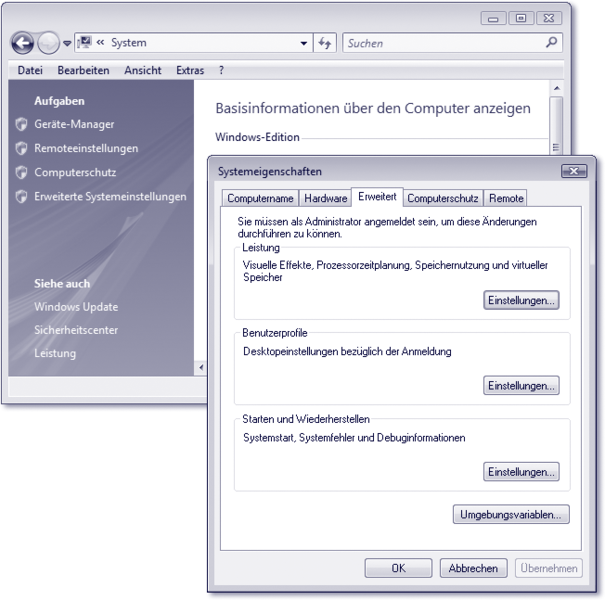 Abbildung 5.3 Unter Windows 7 finden Sie die nötigen Einstellungen im System-Menü.