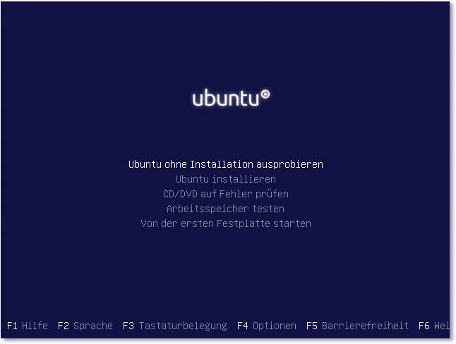 Sie können mit der DVD Ubuntu nicht nur installieren, sondern auch gefahrlos vorher ausprobieren. Hierbei gefährden Sie Ihr bestehendes System nicht (siehe Abschnitt 5.2.1, »Ubuntu ohne Installation nutzen«). Eine Live-DVD bietet die faszinierende Möglichkeit, einmal Ubuntu-Luft zu schnuppern, ohne das System zu installieren. Doch das ist nicht ihr einziger Sinn und Zweck. Eine weitere wichtige Anwendung besteht darin, dass Sie mit der Live-DVD Reparaturen auf Ihrer Festplatte ausführen können, falls das installierte System nicht mehr funktionieren sollte. - Ubuntu installieren