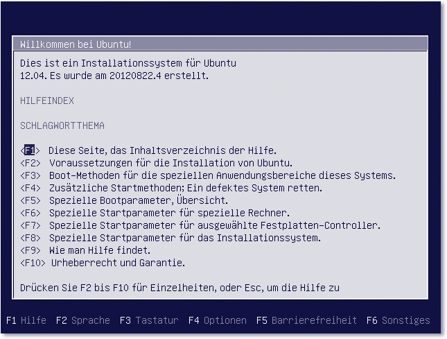 Die Boot-Sequenz habe ich bereits am Anfang der regulären Installation beschrieben,