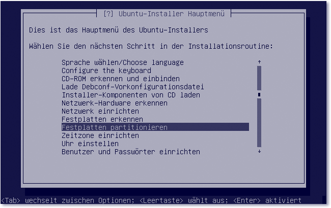 Dies bietet sich beispielsweise an, wenn die grafische Installation aufgrund von Einschränkungen nicht funktioniert. Des Weiteren ist nur mit dieser Methode die Einrichtung eines RAID möglich. Selbstverständlich können Sie auf diese Weise Ubuntu auch parallel zu einem bereits installierten Windows installieren.
