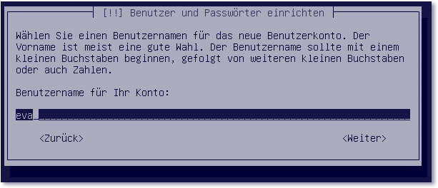 Wenn Sie sogenannte Alpha- oder Betaversionen von Ubuntu ausprobieren oder zu Beginn eine falsche Sprache ausgewählt haben, achten Sie darauf, dass das Passwort keine Umlaute und kein Eszett enthält. Anderenfalls könnte es zu Problemen kommen, wenn die deutsche Lokalisierung an diesem Punkt der Installation noch nicht vollständig ist.