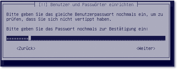 Schließlich wird das Passwort für den soeben angelegten Benutzer definiert. Zum Schutz vor Tippfehlern müssen Sie es zweimal hintereinander eingeben (Abbildung 5.38).