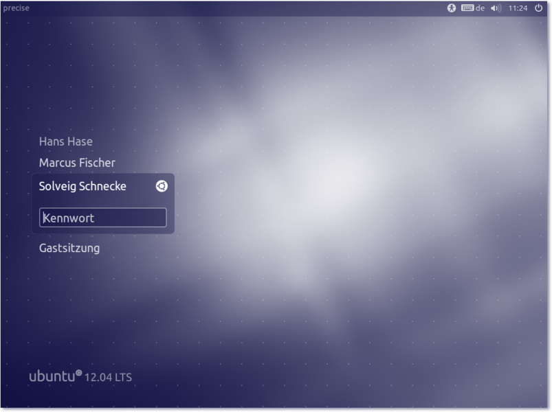 Hier befindet sich eine alphabetische Auswahl aller angelegten Benutzer des Systems. Durch einen einfachen Klick wählen Sie den Benutzer und geben das Passwort ein. An dieser Stelle können sich auch Gäste anmelden, die kein Benutzerkonto auf dem entsprechenden Computer besitzen. Diese Gäste haben allerdings nur sehr eingeschränkte Rechte bei der Verwendung des Rechners. So ist es ihnen beispielsweise nicht möglich, Systemeinstellungen zu ändern oder Dateien zu speichern. Ein solches Gastkonto dient lediglich dazu, dass Besucher beispielsweise das Internet verwenden können, ohne dass Sie als Administrator ein reguläres Benutzerkonto erstellen müssen. - Abschnitt 2
