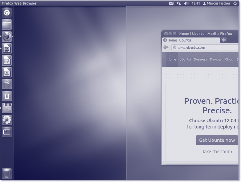 Auf der linken Seite des Bildschirms finden Sie den sogenannten Starter, die Heimat für die Startersymbole. Wenn Sie Windows 7 oder MAC OS X kennen, werden Sie keine Schwierigkeiten beim Verständnis und der Bedienung haben. Die Funktionsweise unterscheidet sich nicht wirklich von den Docks der Mitbewerber. Lediglich die Position dieses Starters unterscheidet sich von anderen Betriebssystemen. Während meistens ein solches Dock am unteren Bildschirmrand angeheftet ist, befindet es sich bei Ubuntu am linken Bildschirmrand. Der Grund hierfür liegt in einer besseren Ausnutzung der beliebten Breitbildschirme.