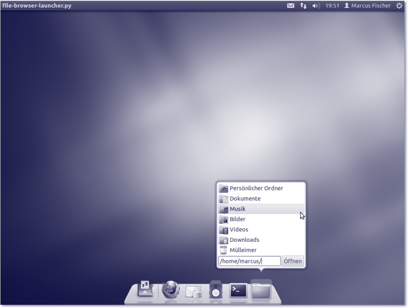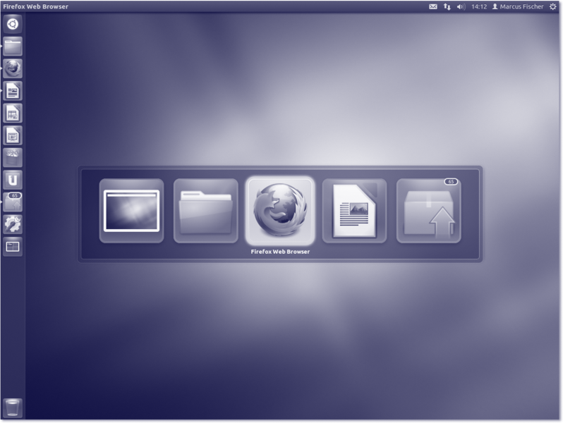 Auch wenn das obere Panel aussieht wie das altbekannte GNOME-Panel, so ist dies ein Teil der Unity-Oberfläche; es übernimmt wesentliche und für die Bedienung wichtige Aufgaben. Die wohl wichtigste Aufgabe besteht darin, dass dieses Panel sämtliche Menüfunktionen der Anwendung übernimmt, die gerade im Fokus ist. Dies klingt kompliziert, ist aber vielleicht den Mac-Anwendern unter Ihnen schon bekannt.