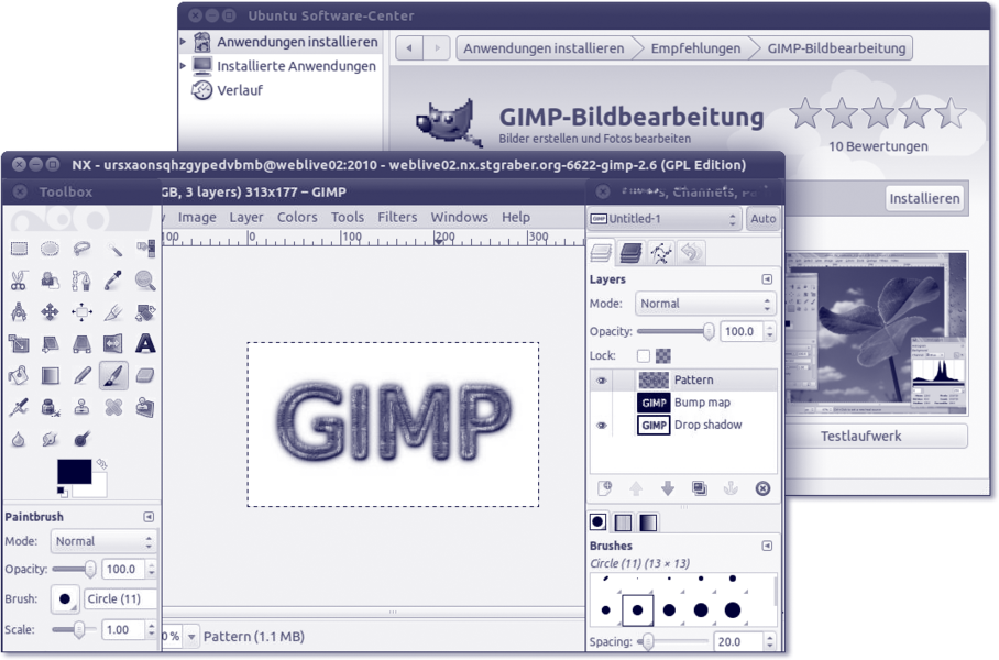 Nichts leichter als das: Sie haben bei vielen Programmen die Möglichkeit, diese ohne Installation auszuprobieren. Dies ist technisch möglich, indem Sie sich innerhalb des Software-Centers mit einem entfernten Rechner verbinden und das gewünschte Programm auf diesem Server verwenden. Diese Möglichkeit ist in Ubuntu 12.04 (noch) nicht standardmäßig vorhanden und muss durch die Installation des Pakets qtnx (ein NX-Betrachter für entfernte Arbeitsflächen) nachgerüstet werden. Sie erfahren mehr über diese Technik in Abschnitt 23.8, »Remote-Administration«. |