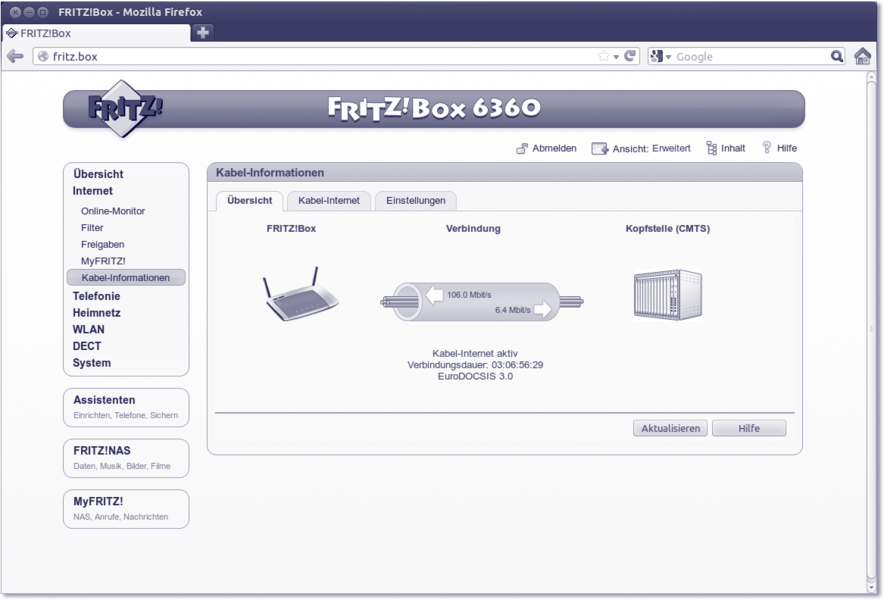 Abbildung 8.5 Einsatz eines Universal-Routers – Hier wird eine FritzBox zur Herstellung der Internetverbindung verwendet, die Sie im »Firefox« unter der Adresse »fritz.box« erreichen.