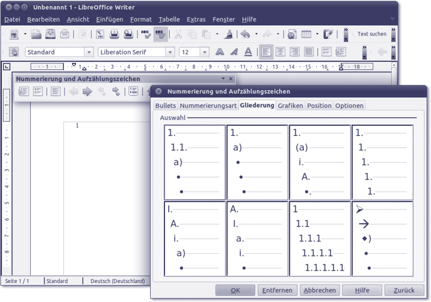 Abbildung 9.2 Erstellen einer Gliederung in »LibreOffice Writer«