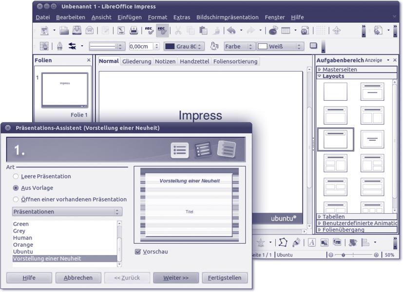 Abbildung 9.6 Präsentationen mit dem Assistenten von »LibreOffice Impress« erstellen
