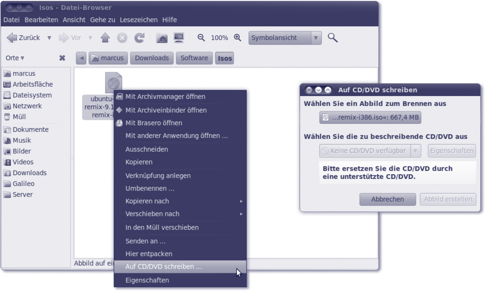 Abbildung 11.3 ISO-Images lassen sich brennen, ohne »Brasero« zu öffnen.