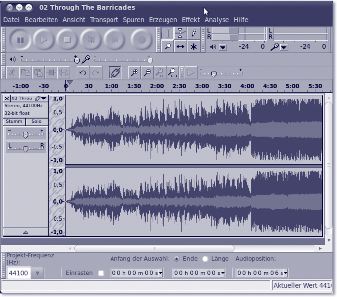 Nachdem nun einige Musikstücke ihren Weg auf den Rechner gefunden haben, wünscht man sich oft, diese neu abzumischen oder auch einfach nur zu schneiden. Dazu bietet sich der Soundeditor Audacity (Paketname: audacity) an, der sogar als professionelles Mehrkanaltonstudio eingesetzt werden kann.