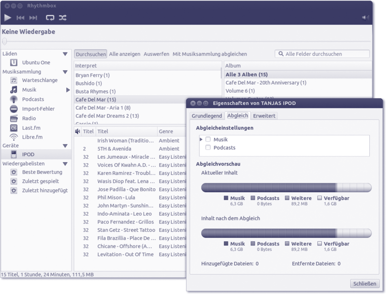 Bei den iPods von Apple ist dies normalerweise nicht so einfach möglich. Hier musste bisher immer eine lokale Datenbank aufgebaut werden, die mit dem Gerät synchronisiert wird. Doch damit hat Ubuntu aufgeräumt.