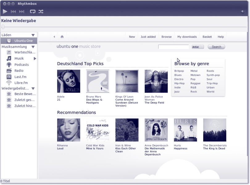 Abbildung 11.8 Mit »Rhythmbox« haben Sie einen einfachen Zugriff auf den »Ubuntu One Music Store«. Ähnlich wie bei »iTunes« können Sie hier schnell und bequem Musik erwerben.