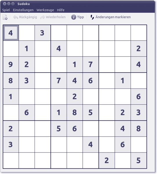 Interessant ist eine Funktion mit dem Namen Tracker. Sie zeichnet die letzten Eingaben auf, so dass sie sich später auf einen Schlag rückgängig machen lassen. Und während Sie beim Papier-Sudoku kräftig radieren müssen, um falsche Zahlen zu eliminieren, kehren Sie bei GNOME-Sudoku mit Hilfe des Trackers erheblich komfortabler an die Stelle zurück, an der die Zahlen noch in Ordnung waren. Einzelne Züge lassen sich mit einer Undo-Funktion rückgängig machen.