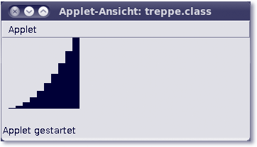 Durch den Befehl javac treppe.java wird eine Java-Klassendatei treppe.class generiert, die allerdings nicht eigenständig lauffähig ist. Binden Sie die Klasse in eine HTML-Datei namens treppe.html ein: