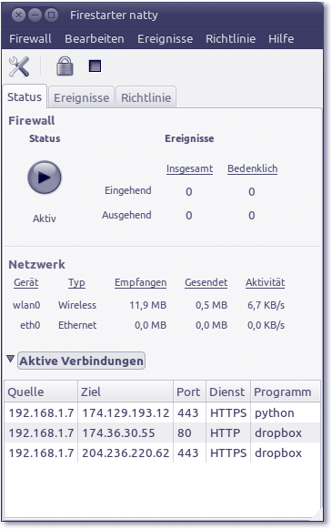 - Firestarter kann jeweils nur eine Schnittstelle überwachen. Während dies für einen Server oder Desktop-PC völlig ausreicht, ist es für Notebook-Besitzer ein Ärgernis. Sie müssen bei wechselnden Netzen die Firewall jedes Mal neu konfigurieren.
