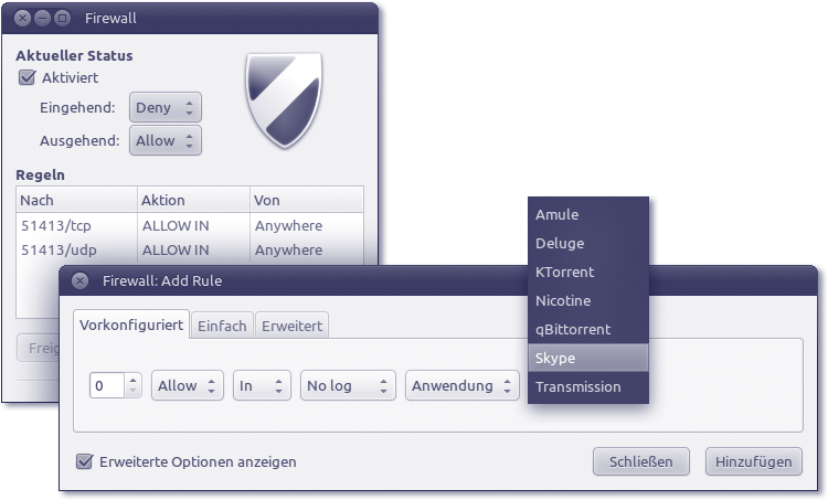 Seit Ubuntu 9.04 gibt es aus zwei Gründen dennoch auch eine grafische Oberfläche für die Uncomplicated Firewall: