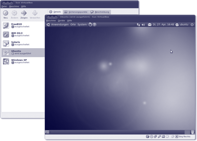 Oracle bietet mit VirtualBox eine eigene sehr leistungsstarke Virtualisierungslösung für die x86-Plattform an. Das Produkt steht mit allen Funktionen unter proprietärer Lizenz, darf aber für persönliche Zwecke sowie zur Verwendung in Bildungseinrichtungen kostenfrei genutzt werden.