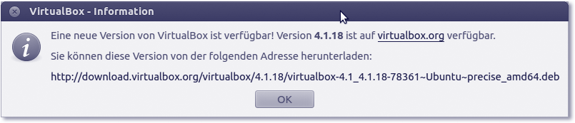 Abbildung 16.8 VirtualBox meldet ein Update, welches Sie durch einen einfachen Klick herunterladen und installieren können.