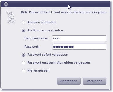 . Im Falle eines nichtöffentlichen Servers werden nun der Login-Name sowie das Passwort