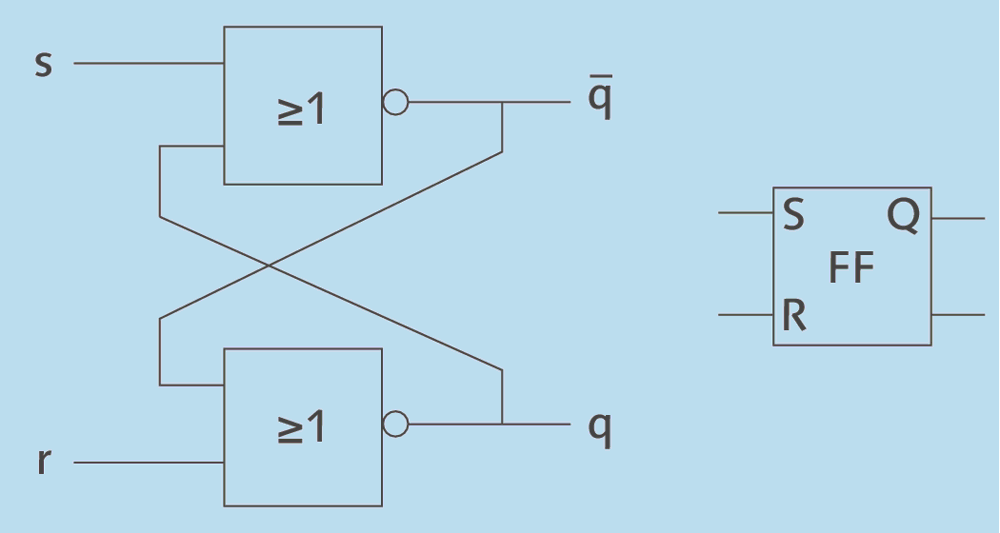 Die bisher untersuchten komplexen Schaltungen sind in der Lage, verschiedene Operationen durchzuführen. Eine andere Art von Bausteinen dient dagegen nicht als Rechenwerkzeug, sondern als Speicher, bei dem ein einmal gesetzter Wert dauerhaft vorgehalten wird. Erreicht wird dies durch verschiedene Arten der Rückkopplung: Ein Ausgang einer Schaltung wird mit einem Eingang verbunden, um einen einmal eingegebenen Wert immer wieder in die Schaltung zurückzuschreiben.