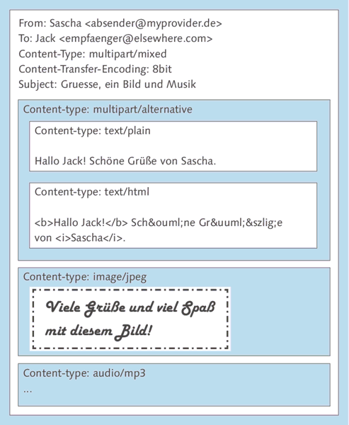 Das einzige unbedingt erforderliche Header-Feld ist Content-type – wie bei E-Mails handelt es sich um die MIME-Formatangabe des Dokumentinhalts. Der Webserver ermittelt den Wert, den er hier eintragen muss, anhand der jeweiligen Dateiendung. Der Browser interpretiert den Wert dieses Felds und nicht etwa die Dateiendung des übermittelten Dokuments. Daher toleriert der Browser auch dynamisch erzeugte Dokumente mit Dateiendungen wie .php, .pl oder .jsp als HTML. Ein Browser benötigt diese Information dringend, damit er weiß, auf welche Weise er die ankommenden Daten interpretieren soll.