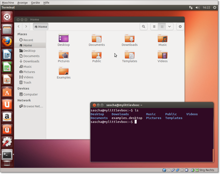 In Abbildung 7.8 sehen Sie den GNOME-Desktop mit dem GNOME Terminal und dem Dateimanager Nautilus.