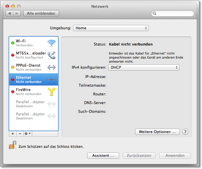 Abbildung 8.7 Konfiguration einer Ethernet-Schnittstelle unter Mac OS X
