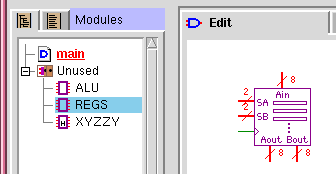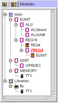 Your design in TkGate is comprised of a hierarchy of module instances.